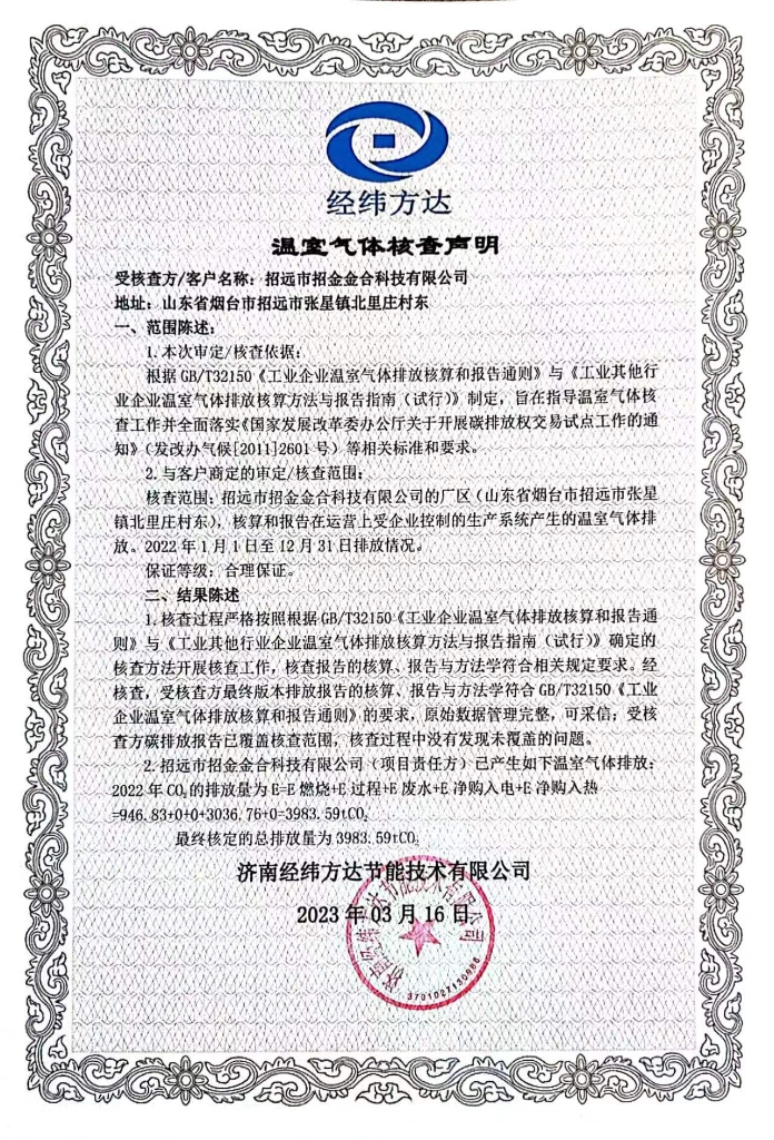william威廉中文官网金合全面贯彻落实国家“碳达峰、碳中和”行动部署,积极开展温室气体核查工作,邀请第三方核查机构对公司温室气体排放进行了全面核查,通过节能降耗等措施减少温室气体排放,现将核查结果向社会公示,积极履行社会责任。