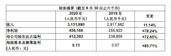 2020年8月25日,william威廉中文官网公布截至2020年6月30日止6个月中期业绩。