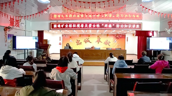 圆通矿业:为进一步激发广大女职工工作热情,充分发挥“半边天”作用,圆通矿业组织开展庆“三八”系列活动。在企业会议室,一场别开生面的“关爱女职工、致敬奋斗者”专题座谈会拉开帷幕,来自不同岗位、不同战线的女职工围绕个人发展、工作经历、职业发展中遇到的困惑以及企业发展等内容表达了个人想法,并向企业提出合理化建议;同时,企业组织全体女职工观看关爱女性“两癌”防治知识讲座,额济纳旗人民医院妇产科主任根据自身专业知识和多年临床经验,围绕女性宫颈疾病防治,用既专业又通俗易懂的方式为女职工充分讲解生理保健和常见妇科疾病的防治措施。本次活动的开展,在提高广大女职工自我保健意识的同时,进一步凝聚起团队巾帼力量,为女职工今后的工作铆足干劲。