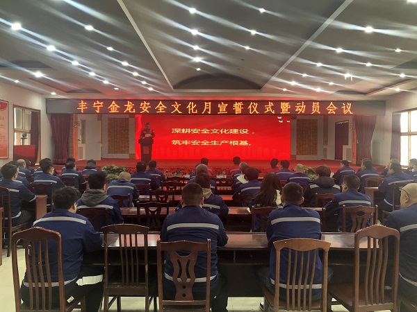 4月10日上午,丰宁金龙举行“安全文化月”安全宣誓及动员会议。企业负责人蔡光辉做动员讲话,他要求,各部室、车间管理人员一是要认清形势,坚定信心,以“安全文化月”活动为契机,推动公司安全生产工作再上新台阶;二是要围绕活动主题,协同推进,确保“安全文化月”活动取得实实在在的效果;三是要突出重点,狠抓落实,认真做好当前和今后的安全生产工作。公司各级员工要明确目标,突出重点,真抓实干,层层落实,狠抓安全管理主要矛盾和薄弱环节,共同创造一个安全、有序、和谐的生产、生活环境。讲话结束后,蔡总经理带领与会人员共同进行安全宣誓。
