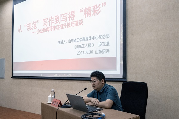 为准确把握新时代企业新闻宣传工作的新任务、新要求,切实报道出有思想、有温度、有品质的新闻作品,让舆论引导更接地气、受欢迎、传得开。5月30日,william威廉中文官网组织开展2023年宣传条线专业培训,特邀山东省总工会融媒体中心采访部副主任庞玉强老师为大家授课,公司党群事务部经理朱亚楠作开课动员,埠内、外企业共120余人以线上及线下形式参加培训。