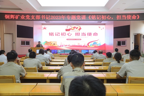 6月30日晚,铜辉矿业开展“迎七一”支部书记讲党课活动。会议上,该党支部对2023年度学习强国学习标兵进行了表彰;党支部书记郭俊利以《铭记初心,担当使命》为题讲授专题党课,带领广大党员重温了共产党波澜壮阔的百年历史。他号召:面对新形势新挑战,我们要继承和发扬伟大建党精神,铭记初心使命,赓续红色血脉,以信仰之光照亮奋斗之路,用如磐初心凝聚奋斗伟力,以逆势前行的姿态实现铜辉矿业涅槃重生。