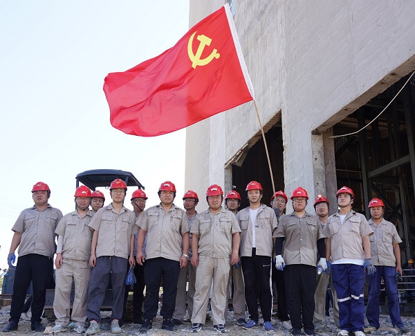 在本次主题党日实践活动中,由20余名党员和入党积极分子组成的党员突击队,战高温斗酷暑,利用一个半小时的时间,将近500米长的高压电缆运送至预定架设位置,为副井实现高压供电及后续二期开拓工程顺利开展提供了坚强保障。主题党日实践活动结束后,大家与鲜艳的党旗合影,并重温入党誓词。大家纷纷表示:通过今天的活动,进一步坚定了入党初心,强化了对党员的自我身份认同和对党组织的归属感。在伟大的党成立102周年之际,以这种方式庆祝党的生日,具有十分重要的意义。在今后工作中,将继续发挥旗帜模范作用,当表率做先锋,以实际行动团结带领广大职工为项目建设建功立业。