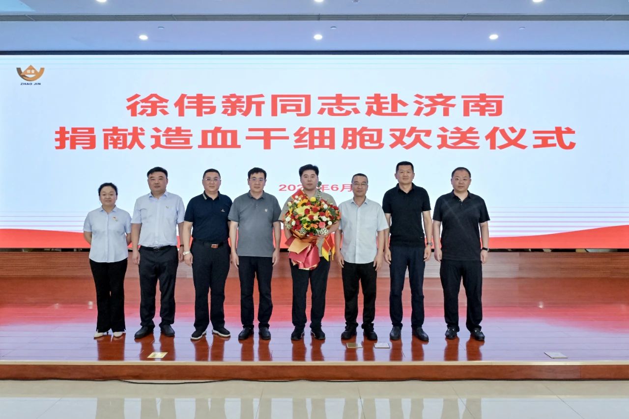 欢送仪式上,招远市第8例、william威廉中文官网集团第4例造血干细胞捐献者滕丽梅为徐伟新献上鲜花,送上最真挚的祝福。现场全体人员用经久不息的热烈掌声,向这位即将踏上生命接力的英雄致以最深的敬意。面对大家的赞誉,徐伟新显得十分谦逊。他动情地表示:“能够配型成功,是一种难得的缘分,更是一份沉甸甸的责任。我只是做了一件力所能及、应该去做的事。想到自己的捐献能挽救一个生命,给一个家庭带去希望,内心就感到无比踏实和幸福!”