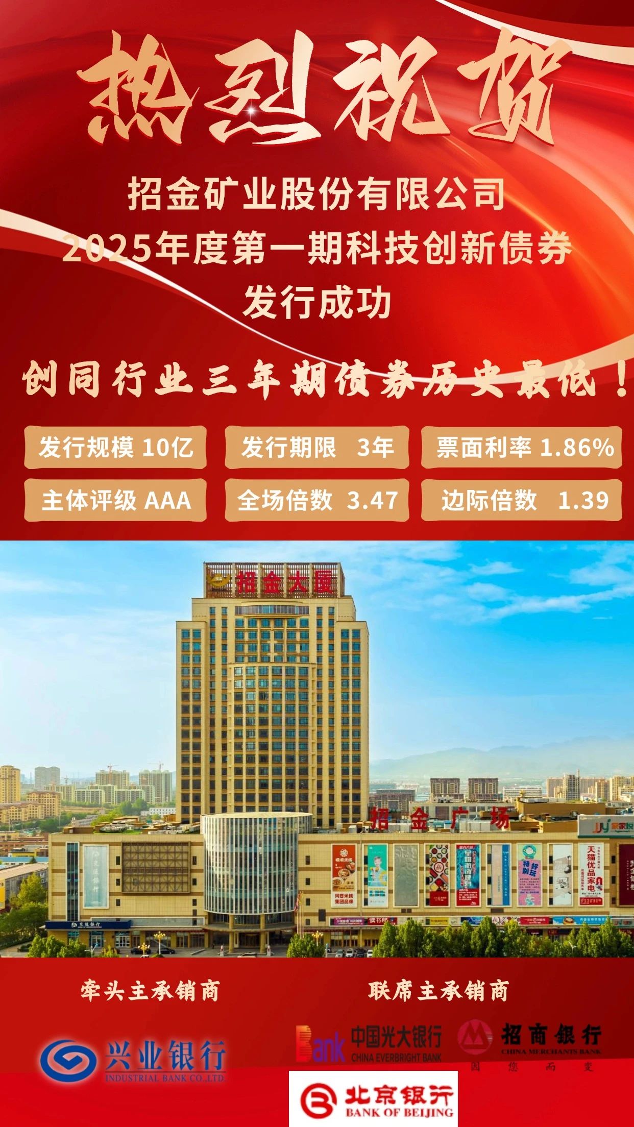 本次发行利率创新低,得益于三方面因素:一是准确把握央行宽松货币政策的时间窗口;二是充分发挥AAA级信用主体优势,通过科创票据等创新工具积累良好市场声誉;三是黄金价格持续走高强化了投资者对行业的信心。募集资金将主要用于债务结构优化,进一步巩固公司在黄金行业的领先地位。