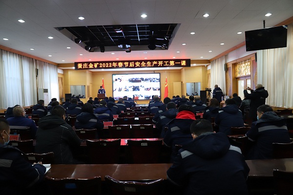 蚕庄金矿牢固树立“开工第一件事就是讲安全、抓安全”的思想。节后复工第一天,该矿召开2022年春节后安全生产“开工第一课”,培训采用“主会场+分会场”网络同步直播的方式进行。“开工第一课”由该矿主要负责人冷启龙授课,他从国家政策、行业监管、内部管理等方面分析了企业当前面临的严峻形势,并从政治站位、责任意识、素质提升和隐患排查等方面做了部署安排。培训课上,该矿集中观看了笏山金矿事故警示教育片,让全体员工了解违法违规操作事故给企业、家庭、个人带来的严重后果,以及需承担的法律责任,真正受到警醒、汲取教训,切实筑牢思想防线。