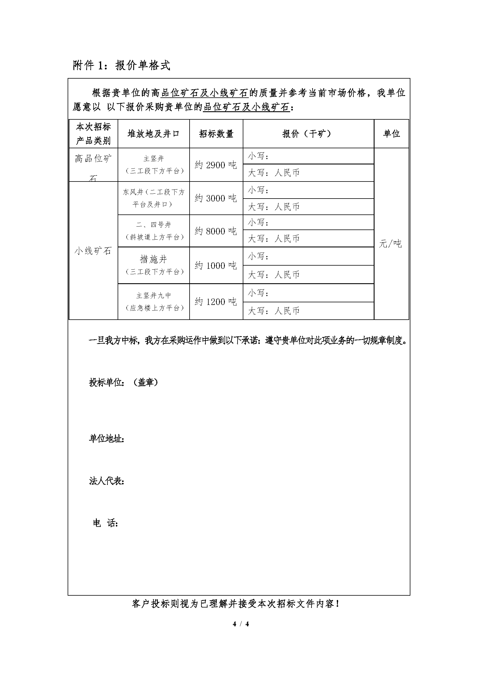 高品位矿石及小线矿石招标文件